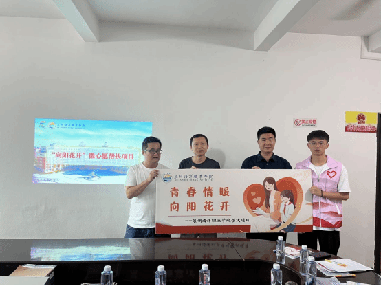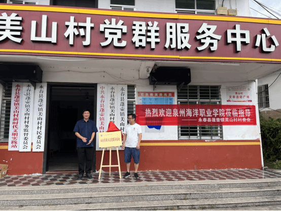 为了更好的宣传高校资助政策、关爱蓬壶镇美山村儿童的健康成才,形成长效机制。我校“星益”圆梦服务队在永春县蓬壶镇美山村村委会举行“志愿服务与社会实践基地”签约授牌仪式、启动“向阳花开”微心愿帮扶项目、成立“爱心图书角”。我校学工部部长张君,学工部副部长、校团委书记屈先锋,蓬壶镇美山村副书记林海瑞出席本次仪式。