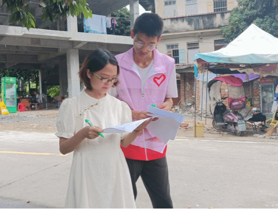(图文 服务队员走访乡间,进行资助政策相关问题的问卷调查、“乡村家庭教育现状”的调研)