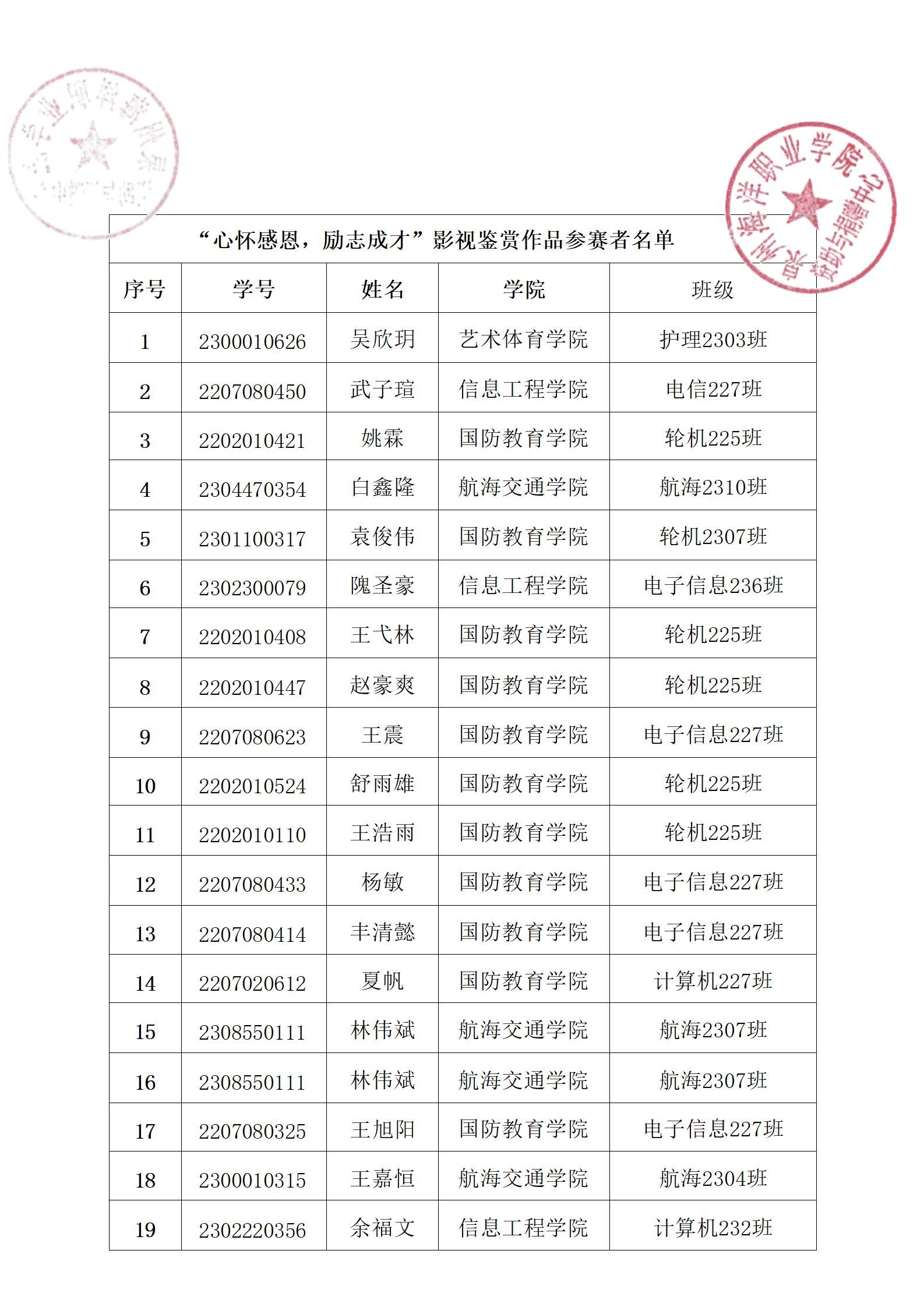 “心怀感恩,励志成才”主题影视鉴赏作品参赛者名单