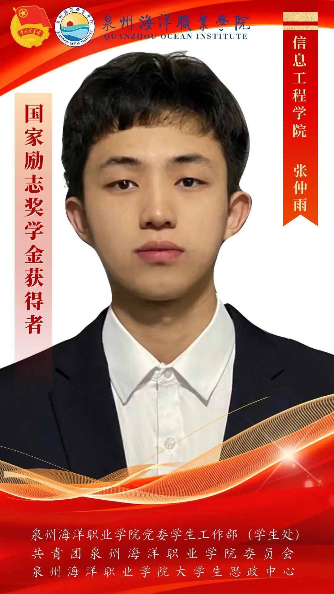 张仲雨,信息工程学院电子信息工程技术223班学生,现为电子信息工程技术223班学习委员,学生社区管理委员会办公室第二负责人。