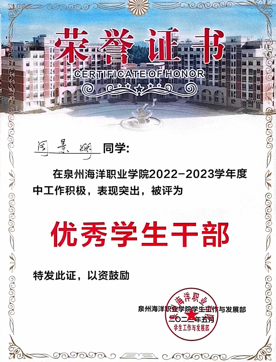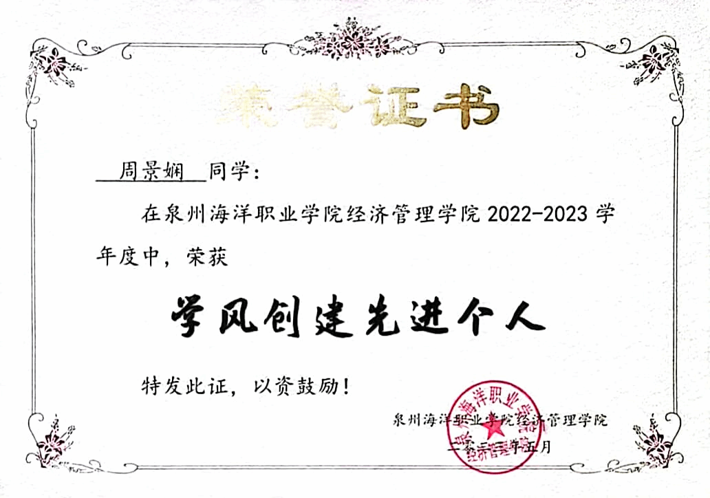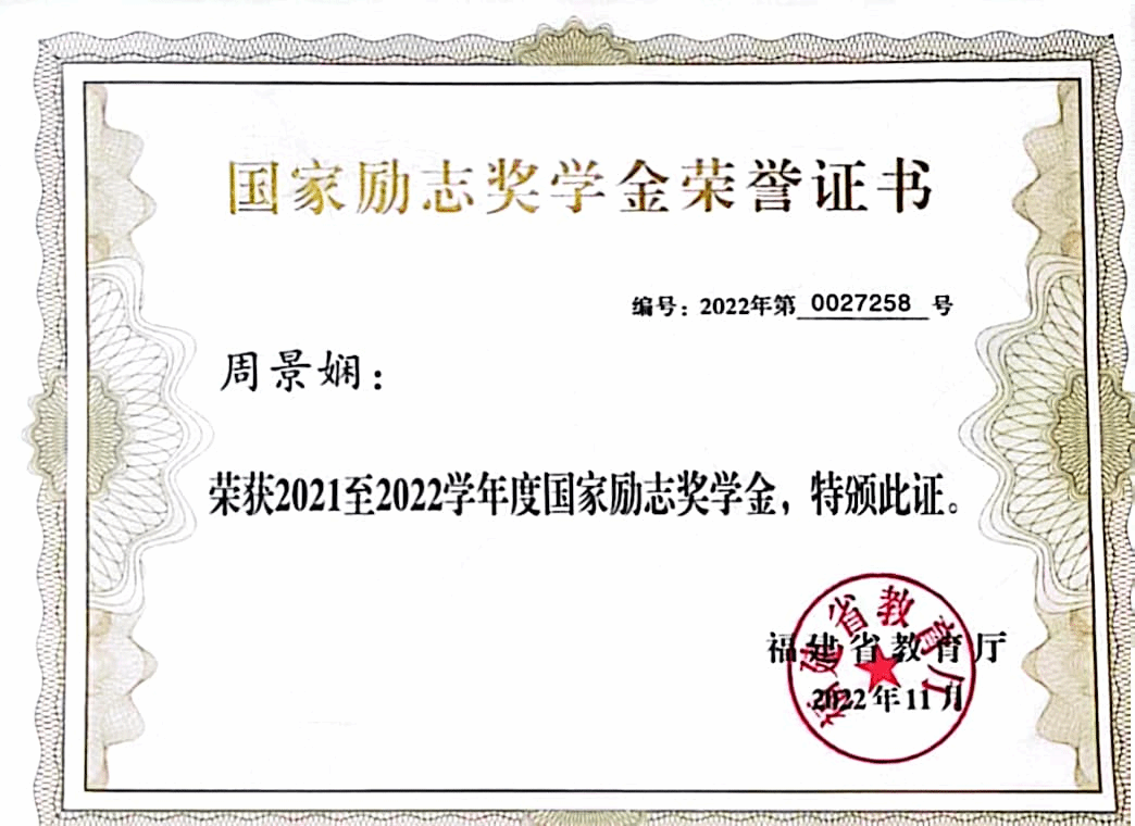 1.2023年12月荣获2022-2023学年国家奖学金。