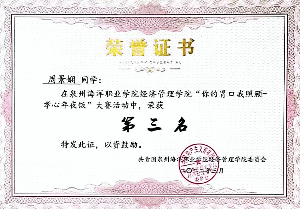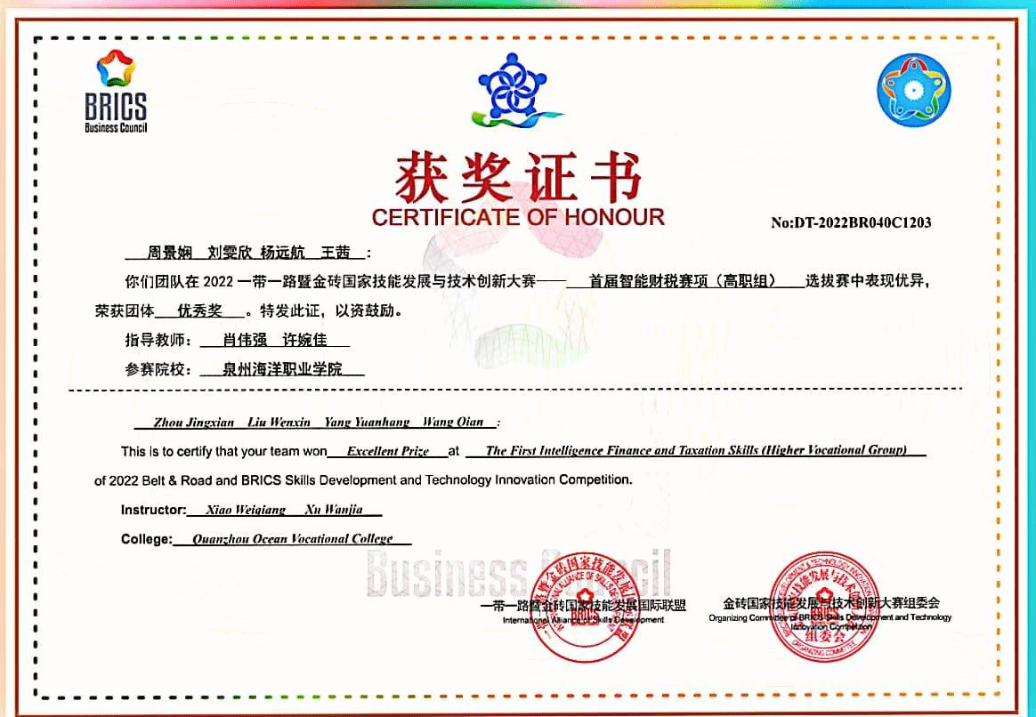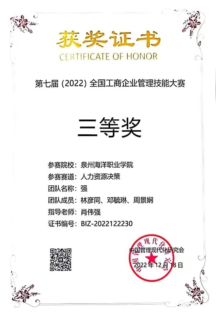 5.2022-2023学年荣获第七届(2022)全国工商企业管理技能大赛三等奖。