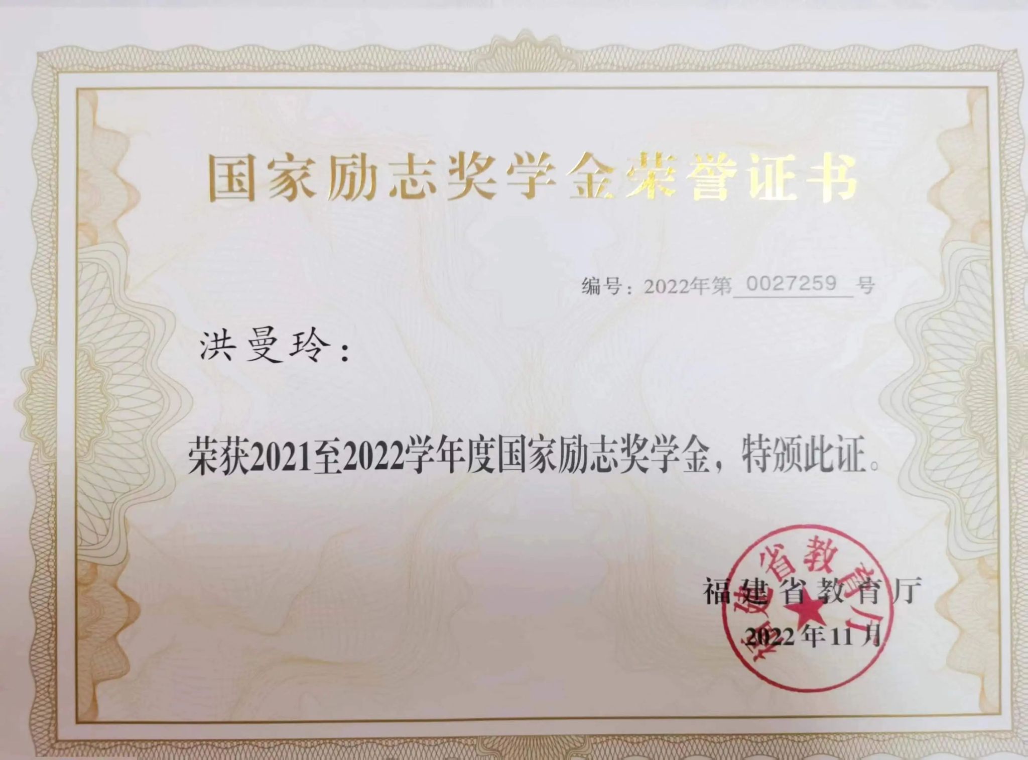 8.2021-2022学年荣获福建省教育厅国家励志奖学金