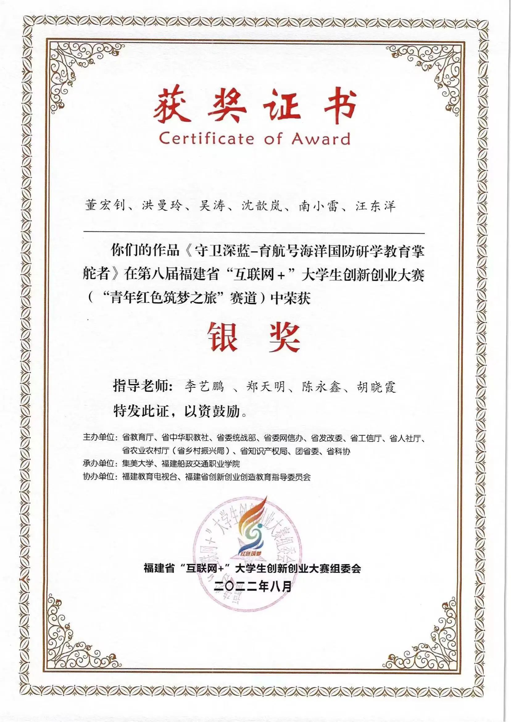 4.2022年8月荣获福建省“互联网+”创新创业大赛组委会 第八届福建省“互联网+”创新创业大赛银奖