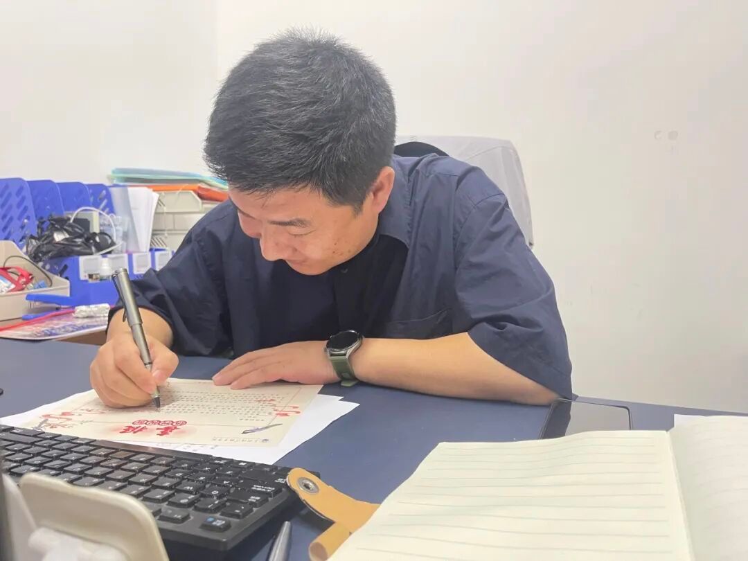 党委学生工作部老师为获奖学子填写喜报