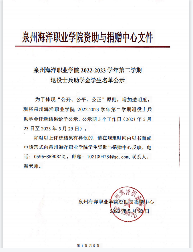 关于评定2022-2023学年退役士兵助学金评定学生名单的决定