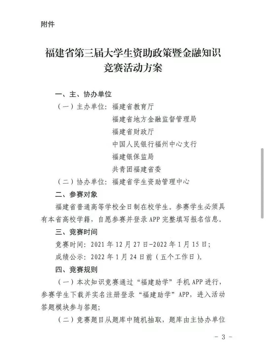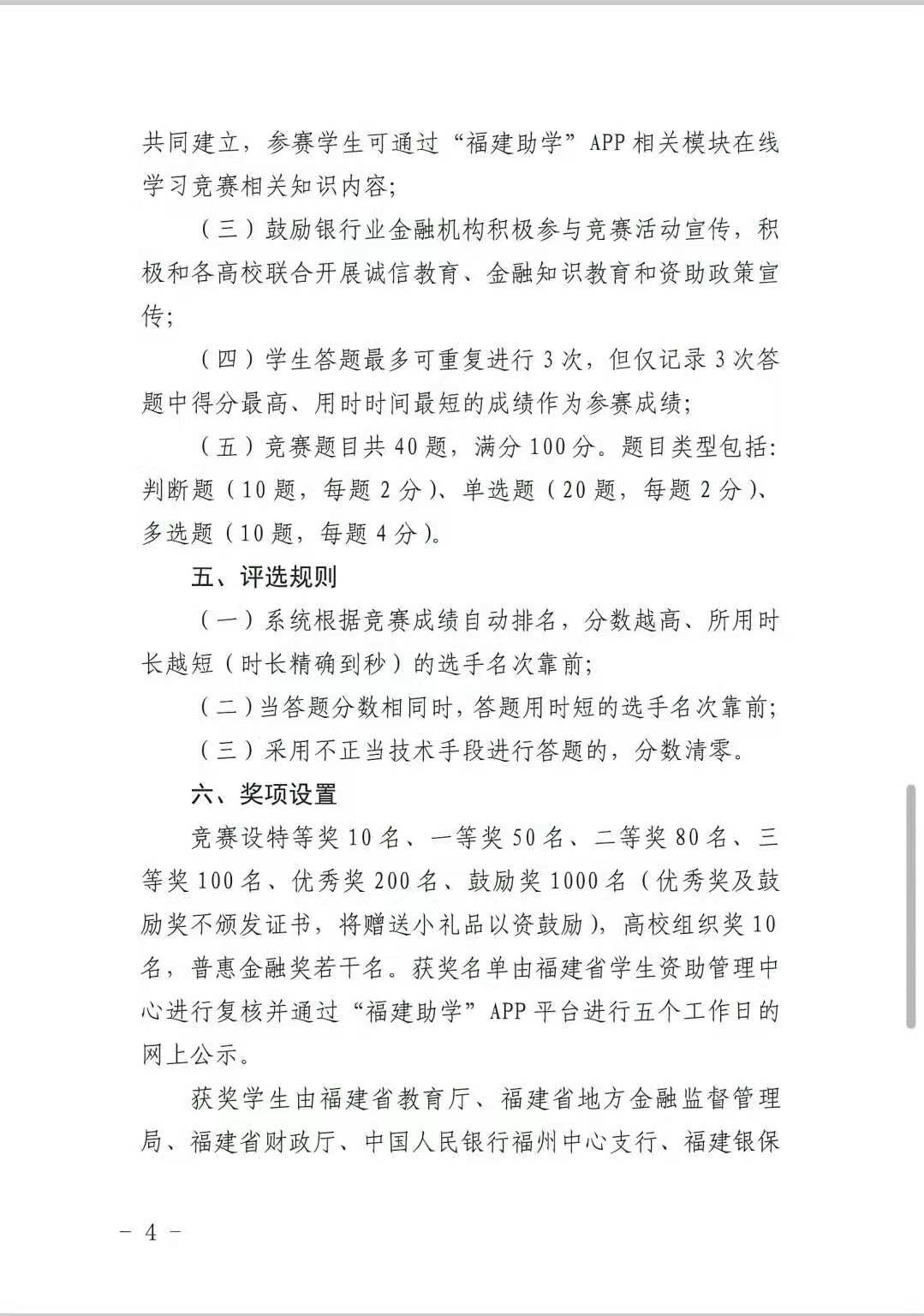 金融知识竞赛答题通道可在闽政通首页搜索“福建助学”,登录之后进行答题。