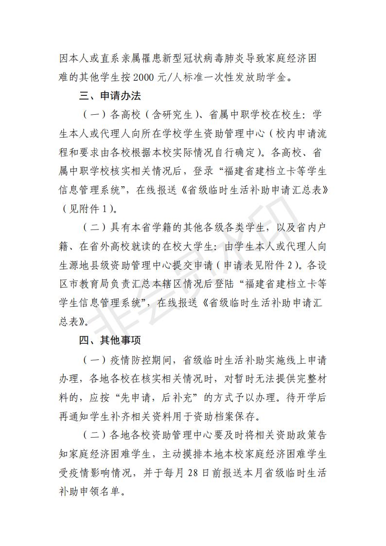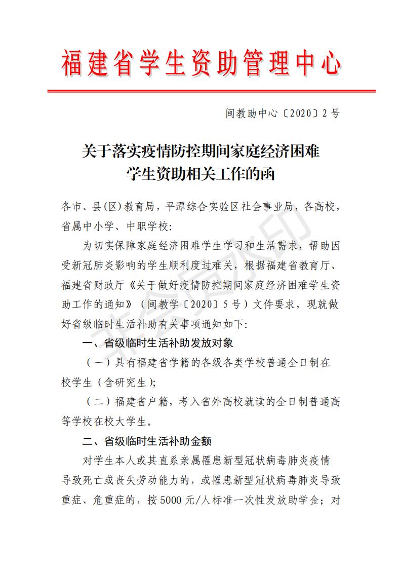 关于落实疫情防控期间家庭经济困难 学生资助相关工作的函
