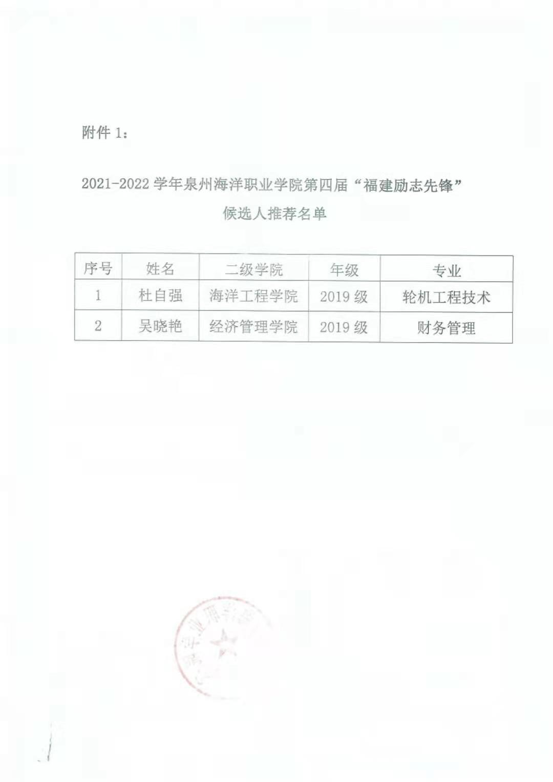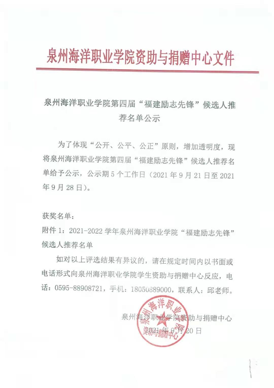福建省第四届“励志校园.感动中国”候选人推荐名单评选公示(1)