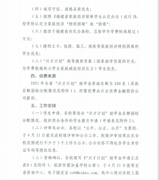 关于做好2021年"兴才计划“助学金的推荐及评审
