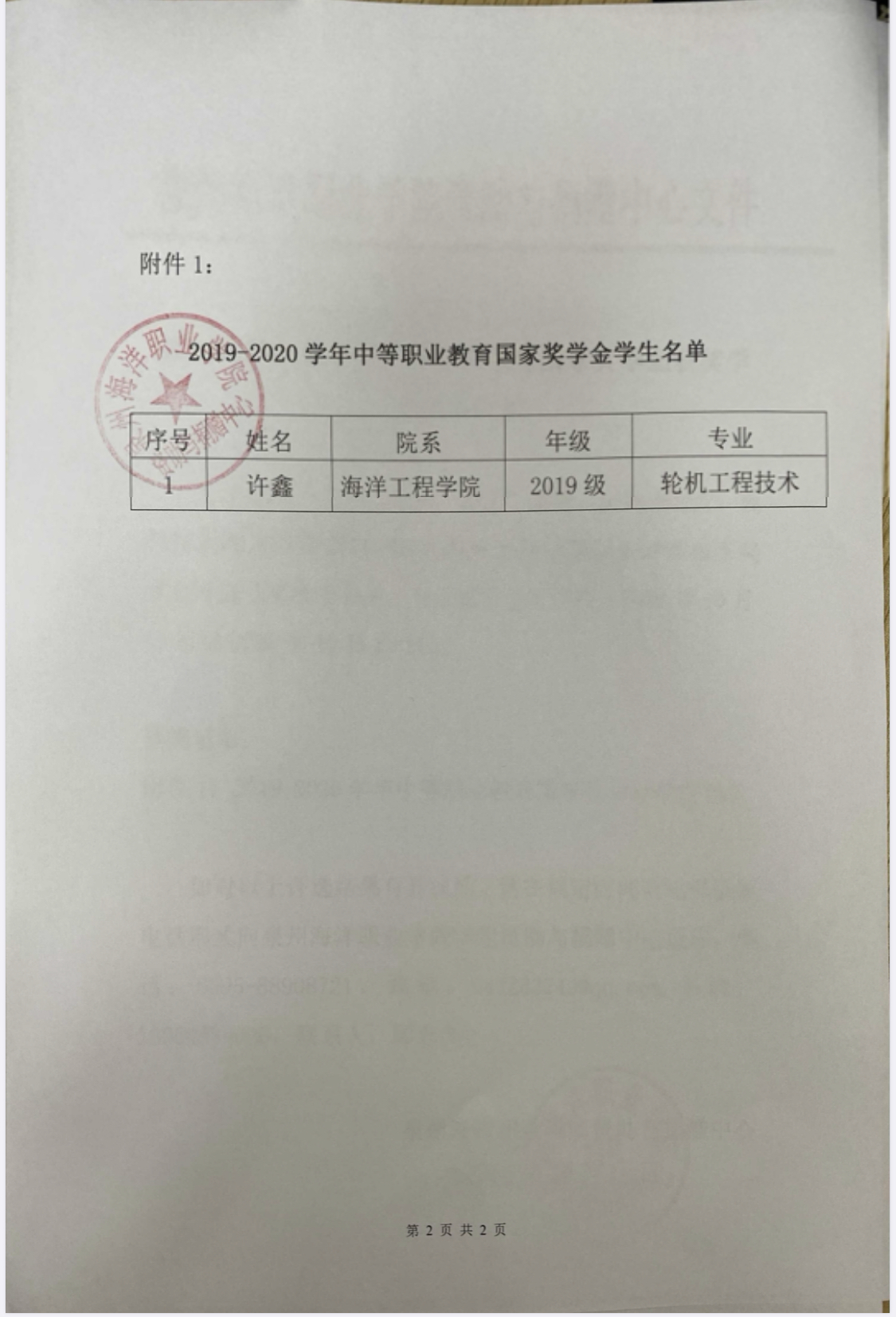 泉州海洋职业学院中等职业教育国家奖学金获奖学生名单公示