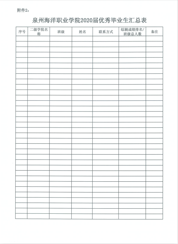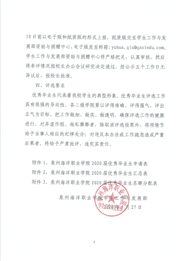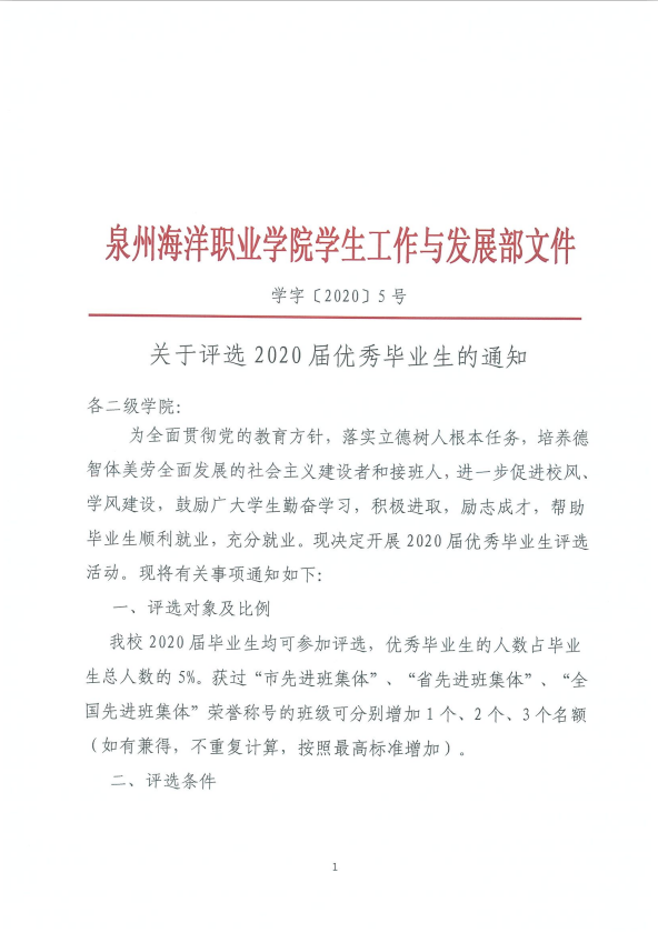 泉州海洋学院关于评选2020届优秀毕业生的通知