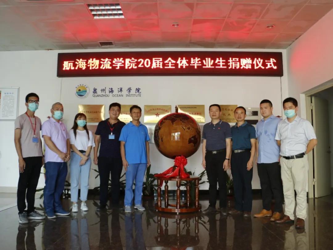 6月19日下午,航海物流学院20届全体毕业生向母校捐赠他们精心准备的礼物——地球仪。校党委书记梁松刚、副校长吴广华、学生工作部部长苏良城、教务处处长钱学东、航海物流学院院长陈东水、党总支副书记魏榕根及办公室副主任董灿荣出席本次捐赠仪式,学生代表杨涛、陈静同学代表20届全体毕业生参加本次仪式。