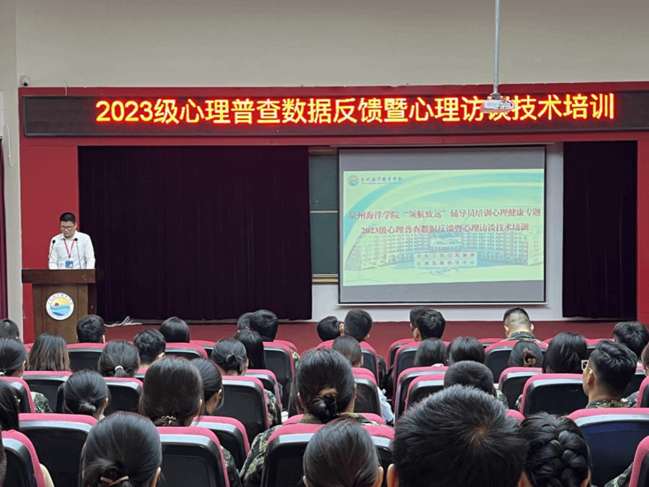 为进一步提升辅导员的谈心谈话能力,推进心理育人工作实效,10月12日上午,我校学工部在2204多媒体教室开展“领航致远”辅导员培训心理健康专题—2023级学生心理普查数据反馈暨心理访谈技术培训”。出席本次培训的领导有校党委副书记、副校长李明灿,学工部部长张君,校团委书记、学工部副部长屈先锋,各二级学院党支部副书记。同时参加此次会议的还有各二级学院心理辅导站副站长、2023级辅导员以及心理发展指导中心全体人员。