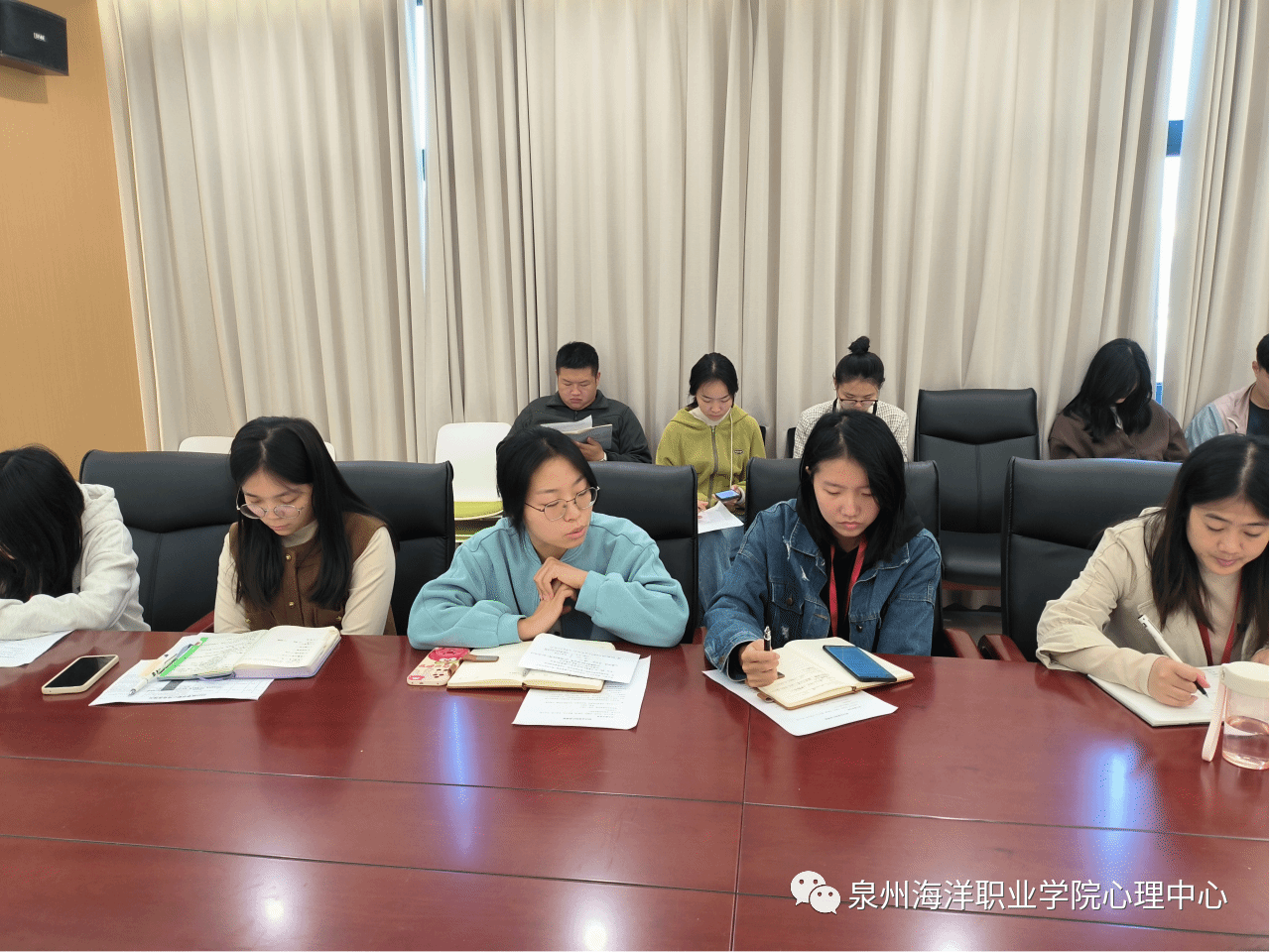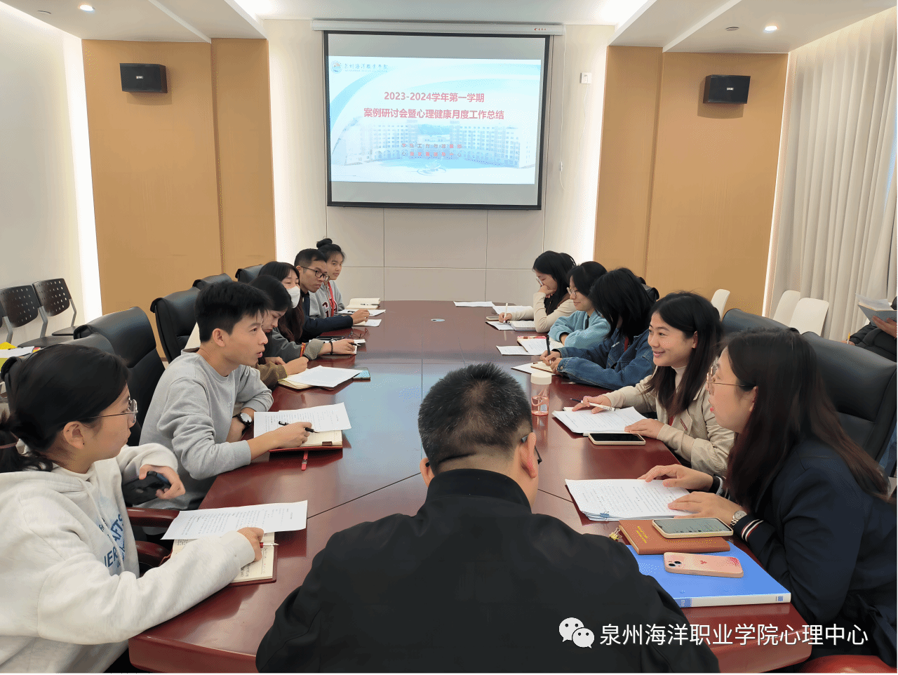首先各二级学院心理辅导站副站长对各自学院11月份的活动进行总结以及12月份活动计划进行汇报。并且对每个学院的特殊情况学生逐一进行了汇报,并提出了工作中遇到的困难同时就近期心理重点事件干预和处理情况进行反馈和交流。