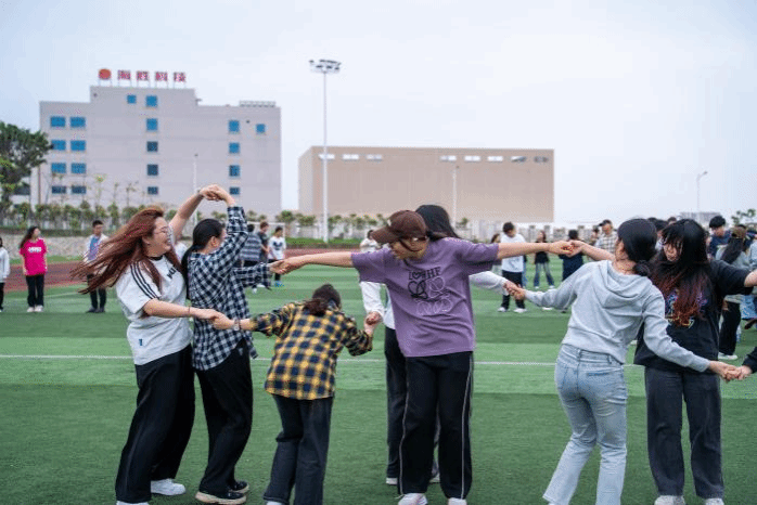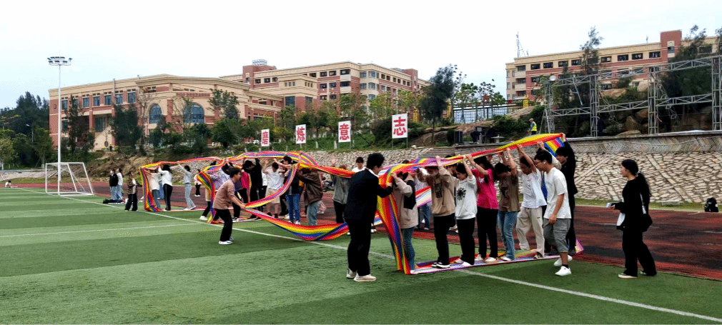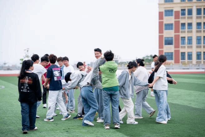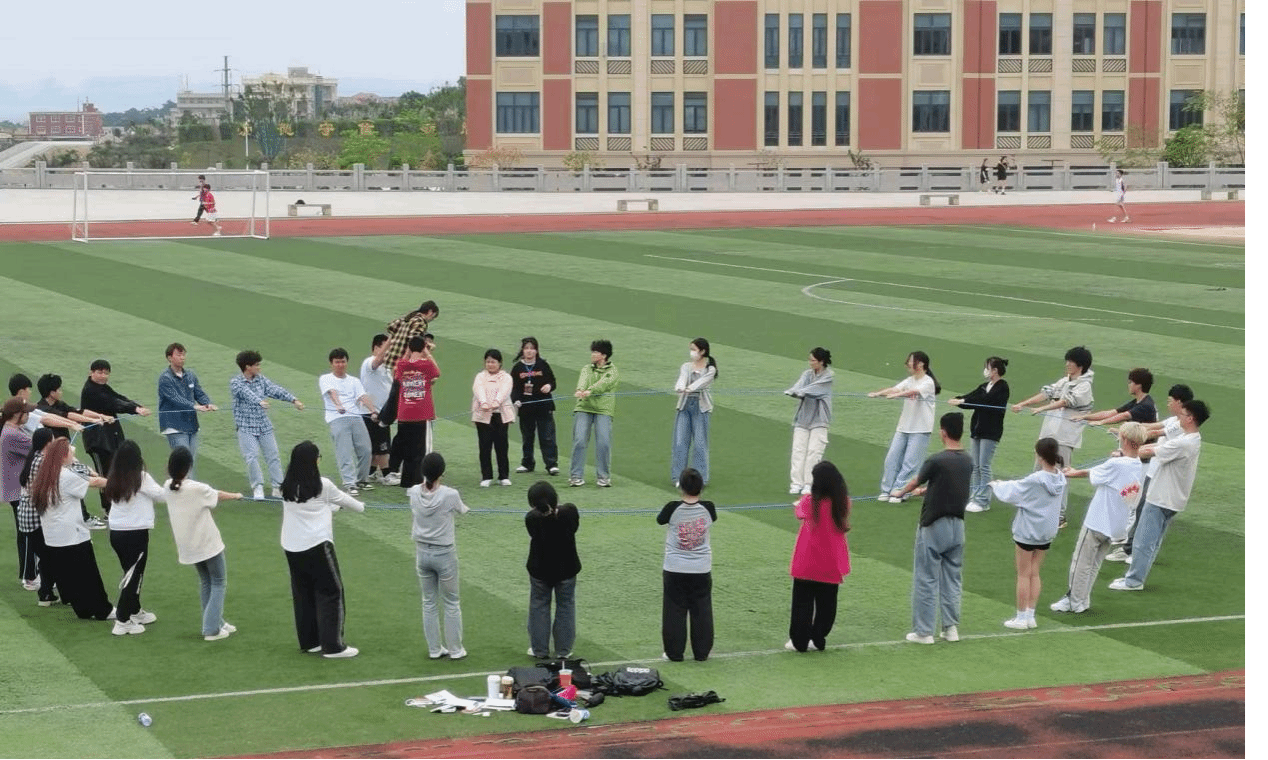 随后,参训人员分成七个小组,在团训小队长的带领下前往操场进行实践活动。活动包括暖身活动、穿针引线、无敌风火轮、生命之圈及活动分享等多个环节。每个环节都紧密结合团队合作、人际交流、挫折应对等心理素质培养目标,让参训者在轻松愉快的氛围中学习协作、提升能力。