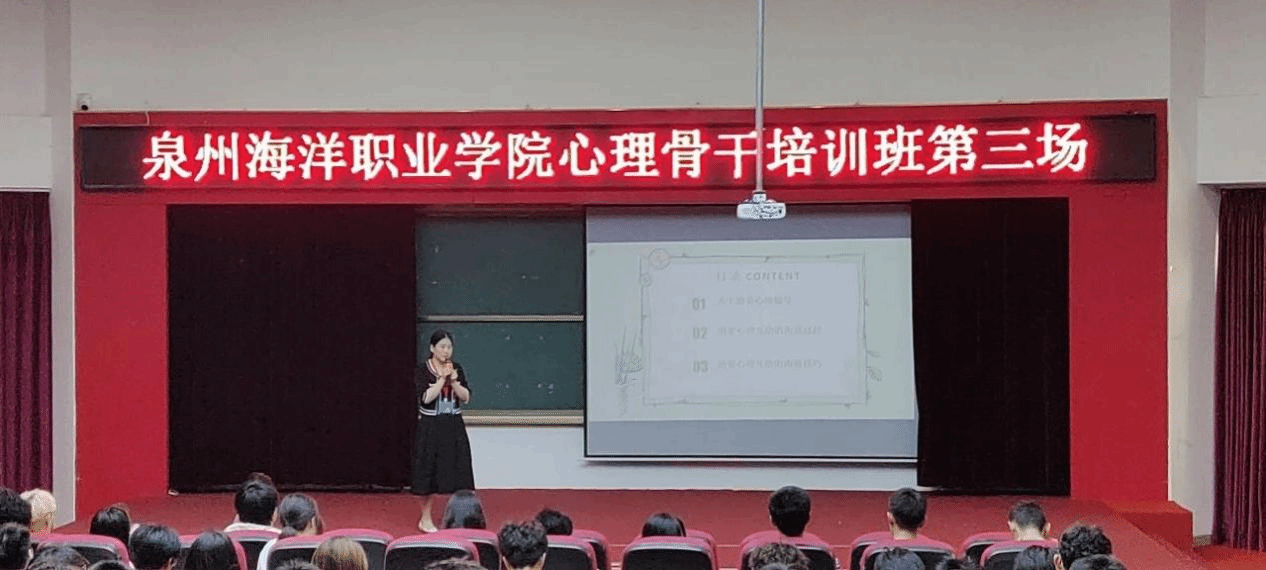 3月27日,第二场线下心理骨干成员培训——《常见心理问题、心理疾病的识别》于图书馆二楼汇报厅成功举行,旨在提升心理骨干成员的心理素质,提高他们对心理问题的识别与应对能力。参加本次培训的有2023级班级心理委员(包含五年专及21级五年专转轨学生)、二级心理辅导站学生骨干成员、大学生心理健康委员会所有成员,本次培训由学工部心理中心的方秀莲老师主持。