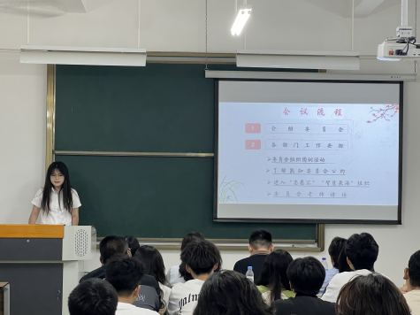 心理委员会 会长许晓雯详细介绍了委员会的工作内容、目标和使命。强调了心理健康在学校教育中的重要性以及委员会在促进师生心理健康方面的责任,并对新成员表示热烈欢迎,鼓励他们积极参与活动,提升专业素养和服务能力。