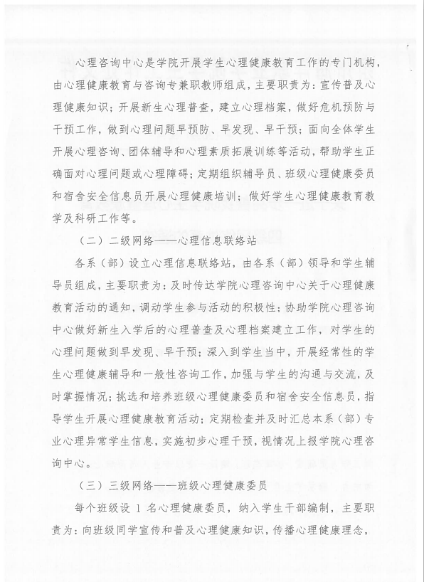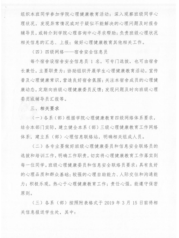 关于进一步完善我院学生心理健康教育四级网络体系的通知