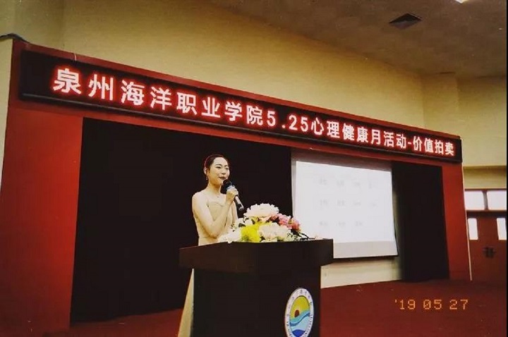 2019年5月27日下午4:30,泉州海洋职业学院心理健康月活动之“价值拍卖”在2204报告厅举行。此次活动由学校心理健康中心方秀莲老师负责,参与者是来自学校各班级心理委员及学生代表共200余人。