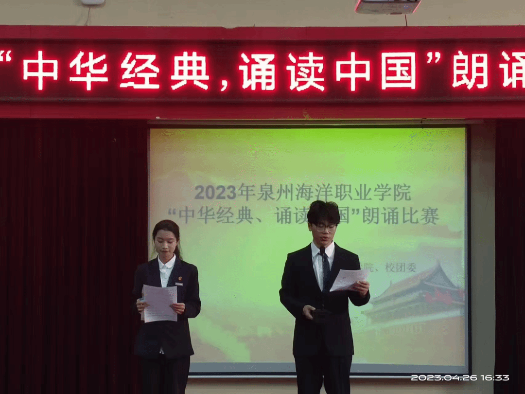 为传承弘扬中华优秀传统文化,引领社会大众亲近中华经典,增强学生爱党爱国情怀,通识教育学院、校团委、校图书馆联合主办2023年“诵读中国”经典诵读大赛。大赛吸引了全校各院学子的积极参与。4月26日,在教学楼2204举行现场决赛,由校长助理兼升本办公室副主任王志华老师、学生工作与发展部资助与捐赠中心副主任温宝林老师、通识教育学院教师邓丽君老师、通识教育学院教师刘蓉蓉老师、通识教育学院教师李锦霞老师组成评委小组,从主题内容、普通话、表达、台风四个角度认真评选出一等奖1名,二等奖3名,三等奖5名。