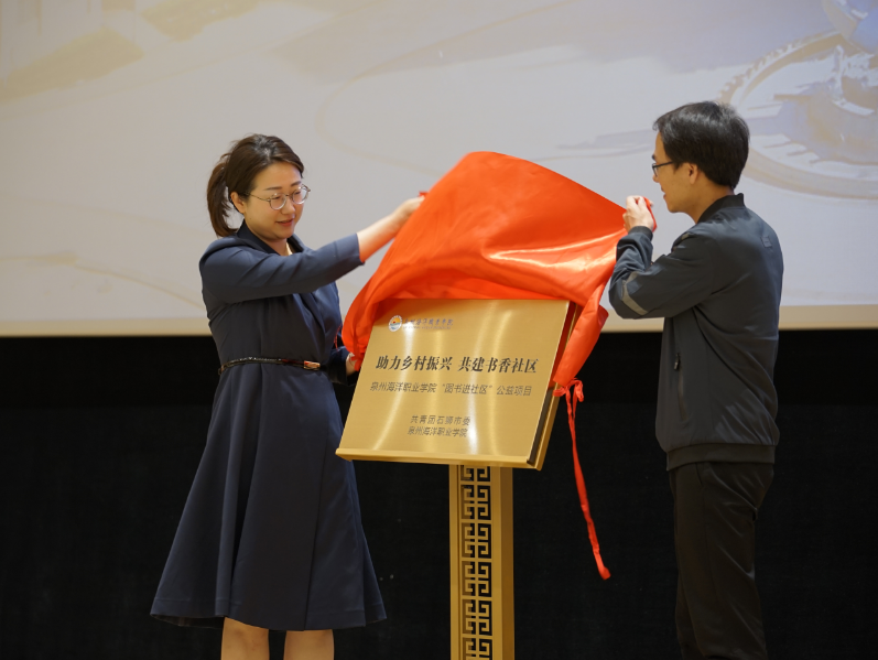 石狮市团市委书记孙甜甜与党委副书记、副校长李明灿共同为团市委乡村振兴项目揭牌。