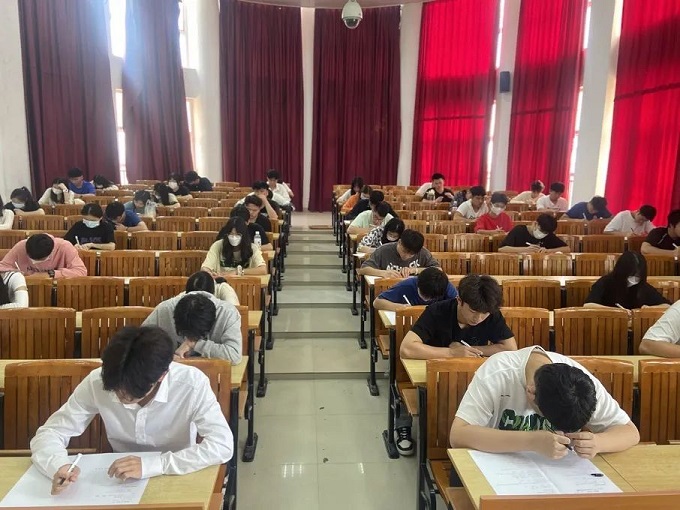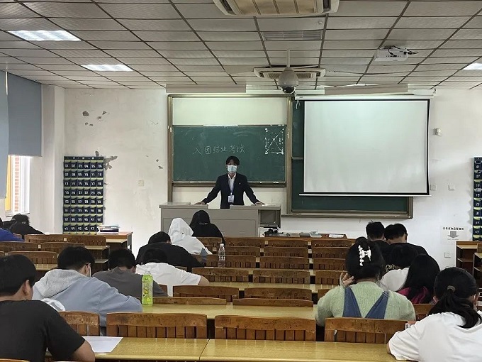 为进一步推动我校共青团工作的深入开展,校团委组织部于5月26日中午,分别在2200、2201、2202等多个教室组织入团积极分子的团课结业考试。 考生们准时到达并有序进场入座,监考人员向考生宣读本次的考试要求和考场纪律后,统一发放试卷,本次考试采取闭卷形式,确保了本次团课考试的公平公正。随后,同学们针对答卷进行了认真细则的作答,将自己在团课培训中的所学所思所想跃然纸上,充分展现了我校青年的明确入团初心,矢志奉献的青年华章。