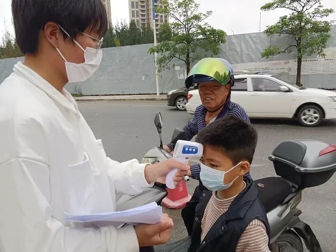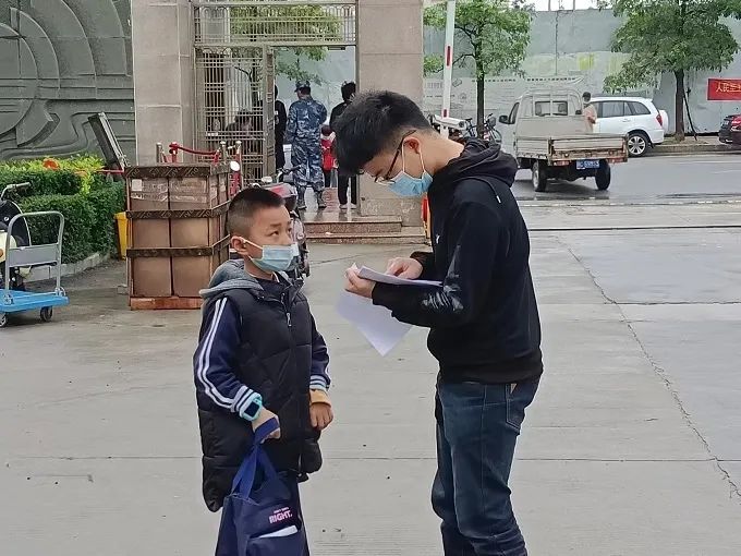 在学校门口,小学生们积极配合工作人员的体温检测,与工作人员核对信息,进行情况摸底,开心的眼神里满是对本次结对帮学的期待。大学生们自然地牵走自己负责的小学生并向教室走去。