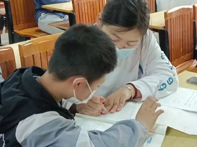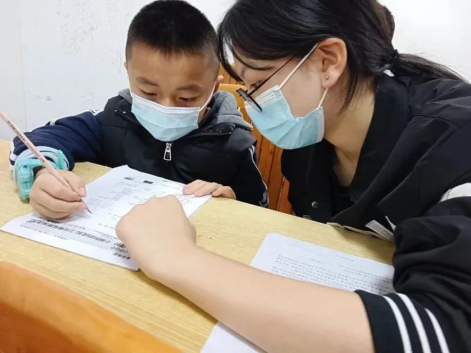 在教室里,大学生们认真地指导着小学生的功课,只见小学生懵懵懂懂的,不断冒出小问号,大学生则是耐心地进行解答,教室的角落里传来写字的沙沙声,悦耳的读书声,大学生和小小学生的笑闹声等等。