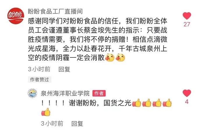 3月29日上午,我校收到了来自霞浦县政府、石狮市鸿峰环保生物工程有限公司、江门顶益食品有限公司、福建盼盼食品有限公司等地方政府和爱心企业的捐赠。