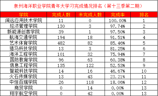 在这里表扬阔远应用技术学院达到了百分之百的完成率,请其他学院继续努力!
