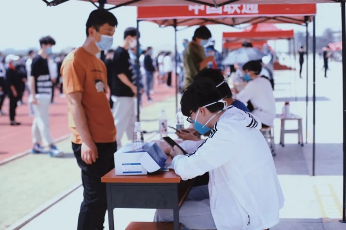 为确保筛查现场秩序井然,校方做足准备工作,提前做好返校学生摸底排查,采取分批错峰的形式开展核酸筛查,避免了出现等待时间过长、人员聚集的情况。医务人员们身着全套防护装备对目标人群进行样本采集,全程佩戴口罩且保持安全距离;学校志愿者积极组织相关人员进行测温验码、间隔排队、有序入场,做好扫码签到、信息录入及路线引导等服务。