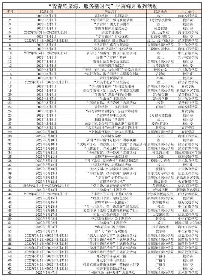 学雷锋不只是在学雷锋日,更应该渗透在我们生活、工作的每一件小事中,为此我校连同各二级学院也开展了一系列相关活动。