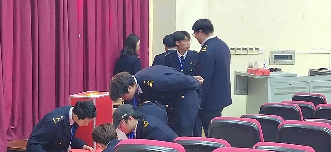 泉州海洋职业学院副校长兼海洋工程学院党支部书记张超、校团委书记周甜、海洋工程学院副院长林杰民、海洋工程学院党支部副书记俞建梁、信息工程学院团委负责人蔡岱宏、海洋工程学院团委负责人陈斌斌、以及我院辅导员。