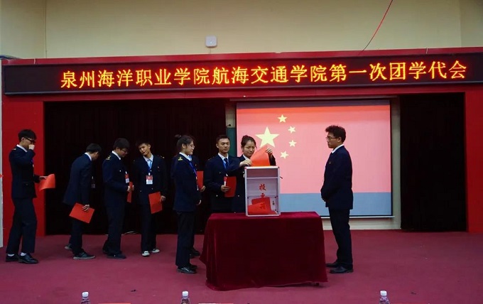 在雄壮激昂的团歌声中,泉州海洋职业学院航海交通学院第一次团学代会顺利闭幕。