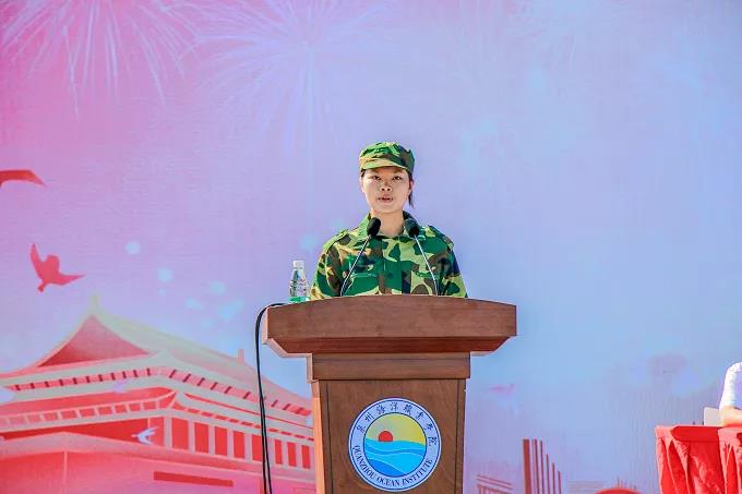 新生代表曹雪丽作为新生代表发言,她表示非常荣幸能作为新生代表发言,她说道:“军训就要结束了,新的征程即将开始,我们要以昂扬的风貌面对崭新的开始。”。航海交通学院周范超老师进行发言,他希望新生能延续军训时期的优良作风,树立远大志向,刻苦努力学习,尽快适应大学生活。张超副校长回顾国防后备班的成立历史并宣布国防后备班特训营正式开始,朱国辉校长为国防后备班特训营开训授旗。