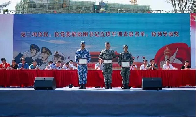 梁松刚书记宣读了关于2021级新生军训的表彰决定,本次大会的领导嘉宾们为优秀教官、优秀学员及优秀团体颁奖。