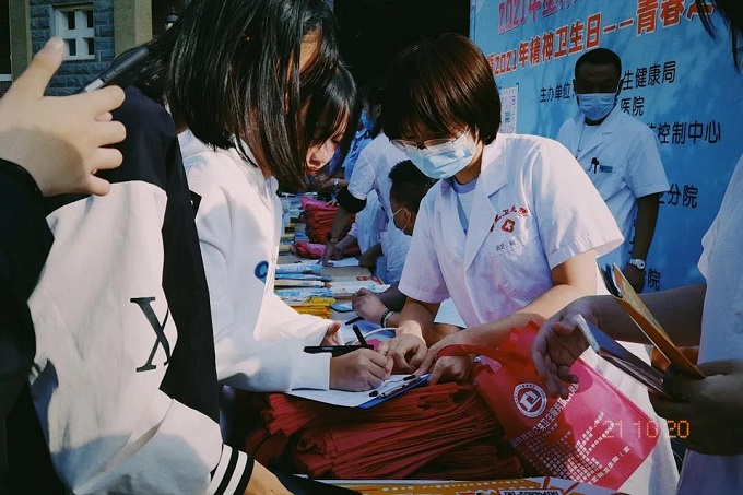 活动期间,工作人员为同学们耐心的讲解了青少年常见 的心理健康问题、帮助同学们答疑解惑、给同学们测量血压等。现场还开展了扫码答题领取小奖品,吸引了大量同学积极参与。