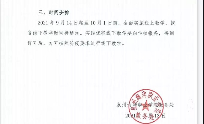 由于近期本土病例不断增加,为响应防控工作,学校取消线下活动,改为线上活动,9月14日至10月1日,在此期间,任课老师需通过钉钉、腾讯课堂……腾讯会议等软件,进行视频讲座、在线问卷等方式教学。