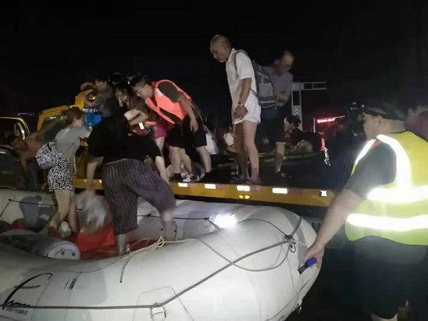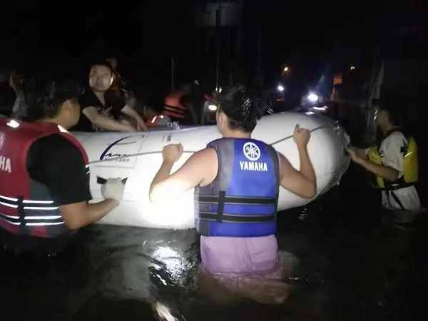 因为新乡大坝决堤水都流向了卫辉市,当天全市水位达到了2m左右深度,迅速装卸完救援装备及物资后,当天晚上就展开了救援工作,水位过高车辆不能通行我们划着皮筏艇前往几公里外等待撤离的居民小区帮助当地居民撤离,我们几个队员从晚上11点到凌晨5点来回反复的帮助居民撤离到安置点。天亮之后我们实在体力不支,于是返回指挥中心休整一段时间后继续对待撤离居民进行搜寻和撤离工作。