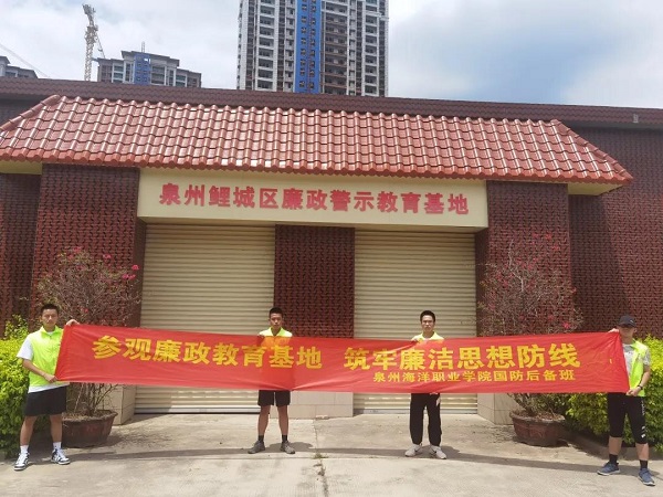 为进一步加强党风廉政建设,提高学生们的爱国主义热情,切实增强国防后备班广大学生的廉洁自律意识,更深层次的树立大学生爱国主义思想。7月19日,由国防后备班暑期“三下乡”社会实践指导老师吴东洋带队,带领学生参观并了解泉州市鲤城区廉政教育基地与龙岭爱国主义教育基地,增强廉洁教育与爱国主义教育信念,传承红色信仰。
