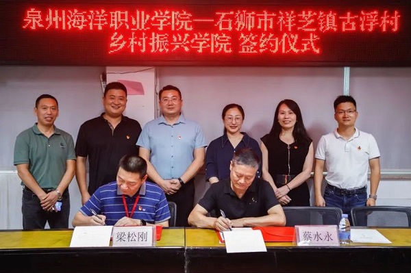 梁松刚书记对古浮两委的积极配合表达了诚挚的感谢,他提到:泉州海洋职业学院是我省唯一一所涉海民办院校,是全国民办教育百强校和国务院扶贫办唯一设立的“全国扶贫就业创业培训基地”,受教育部表彰的全国职业院校脱贫攻坚先进集体。学校与古浮村有着天然的联系,强农兴农是时代赋予学校的责任与担当,乡村振兴,学校当戮力而为。我们要充分发挥人才、教育和科技优势,坚定信心、汇聚力量,打好服务乡村振兴“组合拳”;要贯彻新发展理念,推动乡村产业、人才、文化、生态、组织的全面振兴。