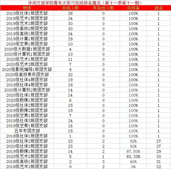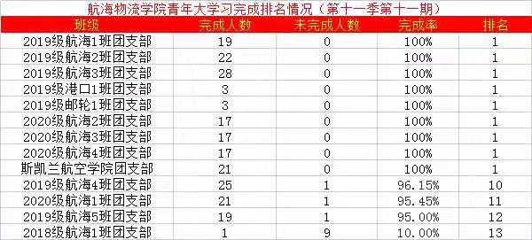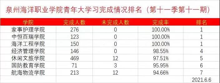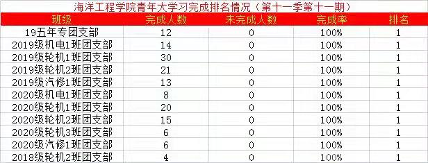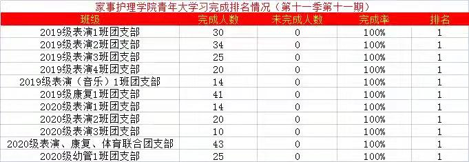 在此对家事护理学院、中恒百瑞学院、海洋工程学院的青年大学习提出表扬!完成率高达100%,当然其他学院也不要灰心,要继续加油哦~