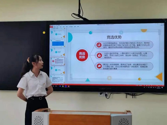 参加竞聘的同学们在自我介绍后,就今后工作思路和工作计划展开讲述,随后评委进行了提问。在此过程中,同学们展现出了对未来工作的信心和期待,工作思路清晰,有改进措施和创新点。