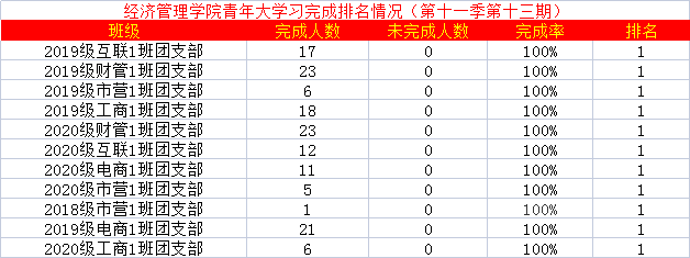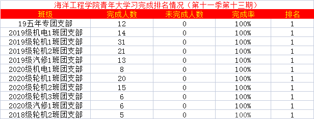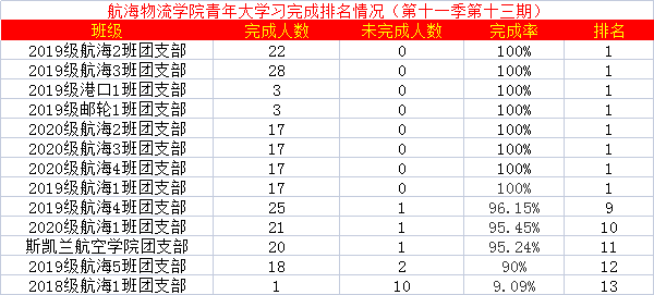 在此对家事护理学院,中恒百瑞学院,海洋工程学院,经济管理学院的青年大学习提出表扬!完成率高达100%。其他学院要继续加油哦!
