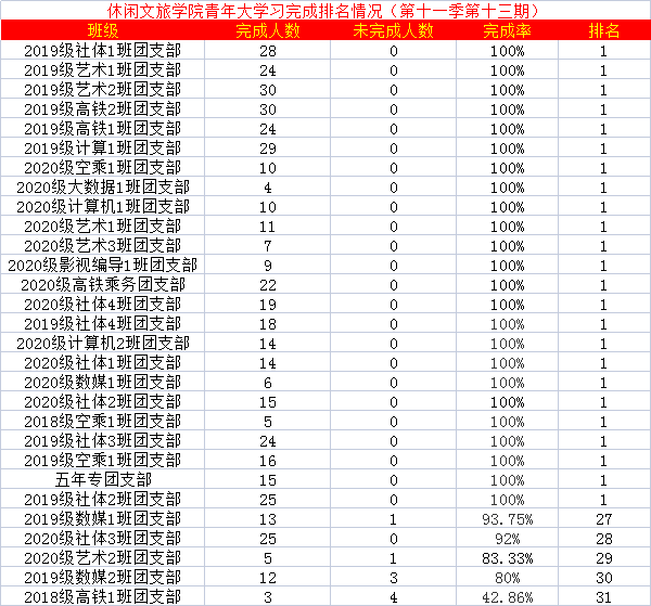 学习新思想,争做新青年!青年大学习第十一季第十三期的团课学习已经圆满结束啦!在上周的团课学习中,团团发现大家不仅丝毫没有懈怠对青年大的学习,而且还取得不小的进步,为大家的努力与坚持点赞!接下来团团带大家一起回顾上一期各学院的学习成果如下:
