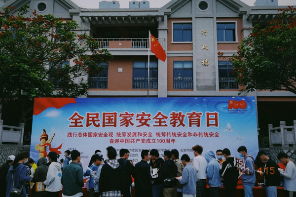 2021年4月15日上午10:00,在我国第六个全民国家安全教育日来临之际,由祥芝镇政府和泉州海洋学院共同承办,中共石狮市委国安办、中共石狮市委政法委、石狮市防线办协同市委依法治市办、网信办、市国家保密局、密码管理局、民宗局、卫健局、巡特警反恐大队、国保大队、法学会、灯谜协会等十多个单位共同参与的全民国家安全教育日宣传活动在我校顺利开展。