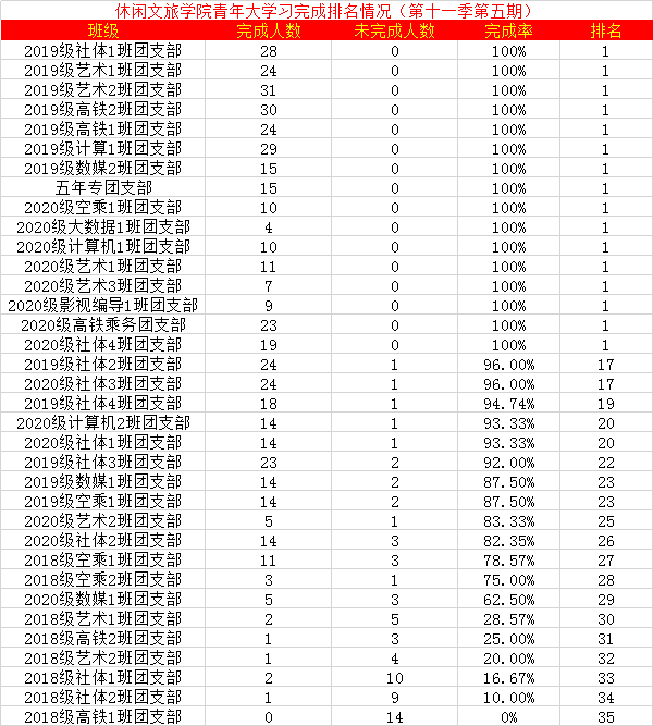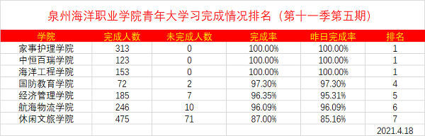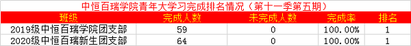 在此对家事护理学院、海洋工程学院、中恒百瑞学院的大学习提出表扬!完成率高达100%,当然其他学院也不要灰心,要继续加油哦~