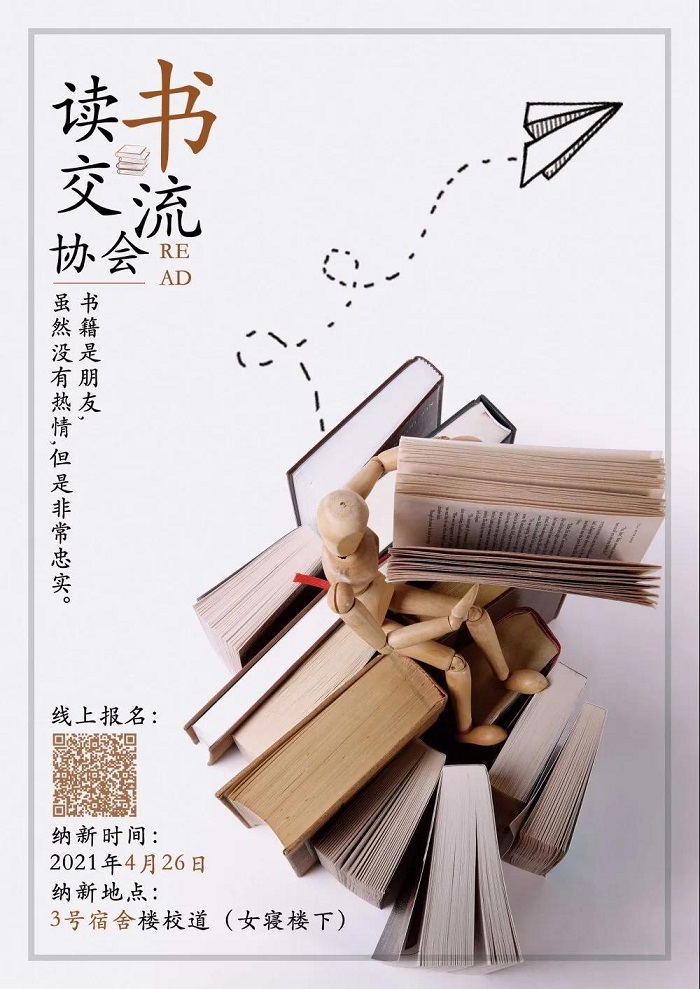 又是一年读书季,加入我们吧!你绝对不会后悔!热爱读书的同学,加入我们吧,我们真诚欢迎你们!想要让自己的大学生活被书籍充实起来的同学,加入我们吧,我们会让你沉浸在书的海洋,感受书籍的魅力!