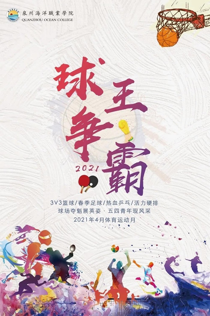 为纪念中国共产党成立100周年,庆祝五四运动102周年,丰富学生的文化生活,推进学校体育文化建设,切实提高大学生的精气神。泉州海洋职业学院2021年体育运动月于4月6日正式拉开帷幕,相信同学们都怀揣着激动的心情期盼已久,快来跟团团一起看看吧!